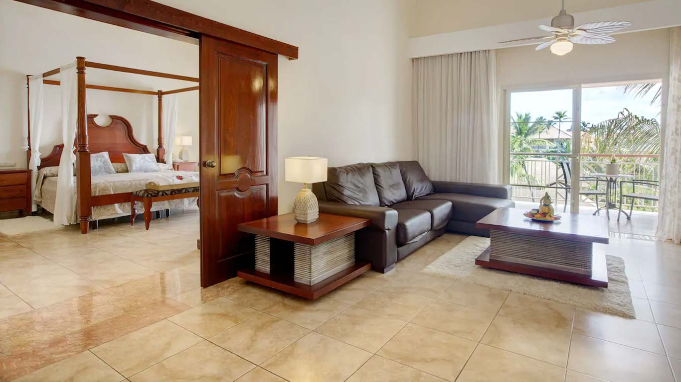 The One Bedroom Suites at Majestic Colonial Resort each measure 1064 square feet and are located on the fourth floor of the complex. These rooms feature a lounge area separate from the main room, an indoor jacuzzi and a king-size four-poster bed. These rooms have a view of either the pool.