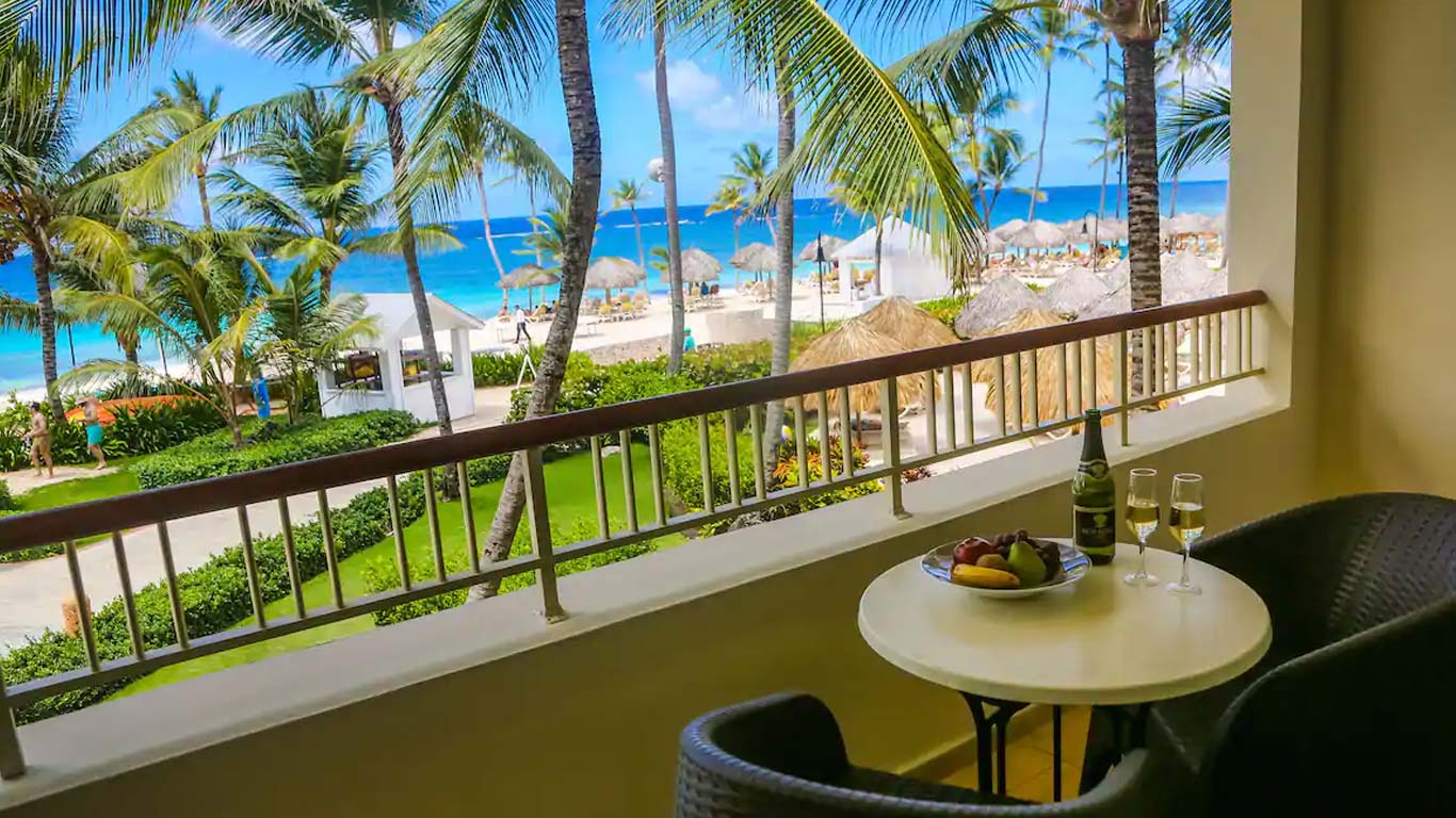 The Colonial Junior Suite Ocean Front (Outdoor Jetted Tub) at Majestic Colonial Resort measures 532 square feet and are located on the 3rd floor and are fitted with 1 indoor and 1 outdoor jacuzzi. These rooms are equipped with a king-size bed and accommodate up to 4 adults.